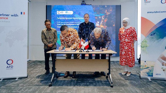 Kesepakatan ditandai dengan penandatanganan naskah kerja sama oleh Direktur Pengembangan Bisnis PT MRT Jakarta (Perseroda) Farchad Husein Mahfud, AFD Indonesia Country Director Yann Martres, dan Direktur Utama PT MITJ Fuad Fachroeddin di Gedung Transport Hub, Jakarta Pusat, pada Rabu (2/10/2024).