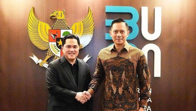 Menteri Koordinator Infrastruktur dan Pembangunan Kewilayahan, Agus Harimurti Yudhoyono (AHY) melakukan pertemuan dengan Menteri BUMN, Erick Thohir di Kementerian BUMN, Jakarta pada Selasa (7/1).