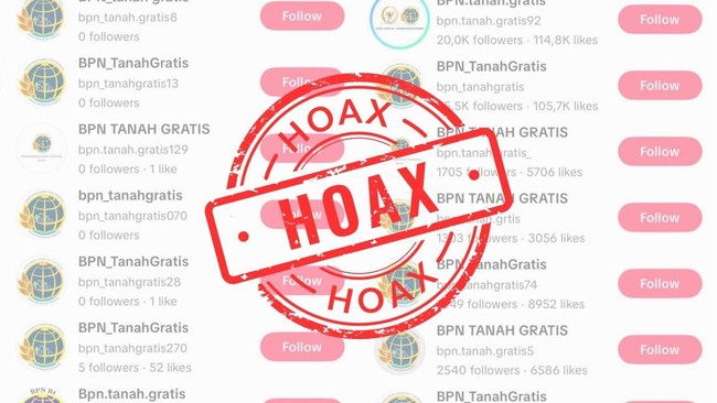 "Kami melihat banyak sekali akun TikTok @bpn_tanahgratis beredar. Untuk itu, masyarakat diimbau untuk tidak terpengaruh dengan akun media sosial tidak resmi yang menyebarkan klaim seperti 'BPN Tanah Gratis'," kata Harison, dikutip dari keterangan tertulis, Kamis (21/8/2025).