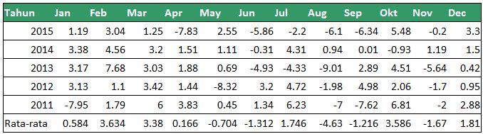 Tahukah Anda bahwa rata-rata pertumbuhan IHSG sejak tahun 2011-2015 bulan Agustus memiliki pertumbuhan rata-rata terendah, yakni -4,63.