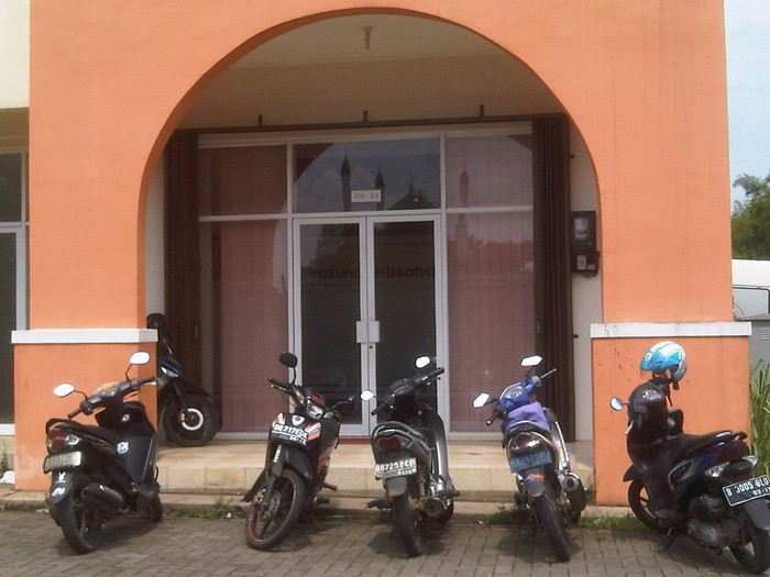 Tampilan depannya sederhana sekali, tanpa ada embel-embel atau papan nama program PU maupun PA. Beberapa motor tampak terparkir di depan pintu kaca yang tertutup.