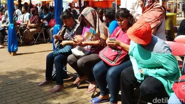 Ia pun memanfaatkan kerabat dan keluarga untuk ikut antre agar uang yang ditukarkan bisa lebih banyak dibanding hanya ia seorang yang antre.