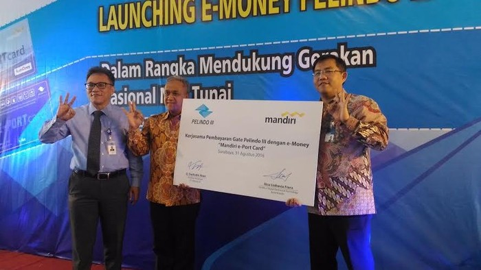 "Ini adalah pertama kali di pelabuhan di Indonesia. Kami juga mendorong insan kepelabuhanan mewujudkan cashless society (komunitas yang meminimalisasi transaksi tunai) sehingga kami dapat menjadi pelopor e-port di Indonesia," ujar Direktur Keuangan Pelindo III Saefudin Noer kepada wartawan usai acara peluncurn e-money Pelindo III di Terminal Gapura Surya Kencana, Rabu (31/8/2016).
