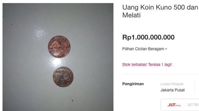 Dari penelusuran detikcom, uang logam ini memang dijual di sejumlah marketplace dan harganya pun bervariasi. Bahkan ada yang jual hingga seharga Rp 1 miliar.
