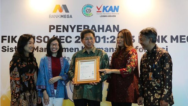 "Bank Mega berhasil memenuhi semua tahapan ketat yang diperlukan dalam proses sertifikasi sehingga sangat layak mendapatkan sertifikasi ISO 27001:2013," ujarnya.