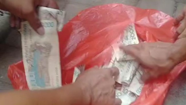 Diketahui, uang tersebut di antaranya ialah uang 'plastik' pecahan Rp 100 ribu bergambar Soekarno-Hatta, pecahan Rp 20 ribu bergambar Ki Hajar Dewantara, dan Rp 10 ribu bergambar Cut Nyak Dien.