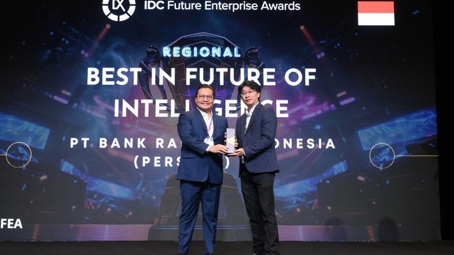 PT Bank Rakyat Indonesia (Persero) Tbk berhasil mendapatkan penghargaan di helatan Future Enterprise Awards 2023 yang diselenggarakan oleh International Data Corporation (IDC) di Singapura, Selasa (31/11/). Penghargaan ini diberikan kepada BRI atas keberhasilan platform Artificial Intelligence & Machine Learning-nya, BRIBRAIN, meningkatkan produktivitas tenaga pemasar BRI sekaligus memperluas inklusi keuangan secara sustainable.