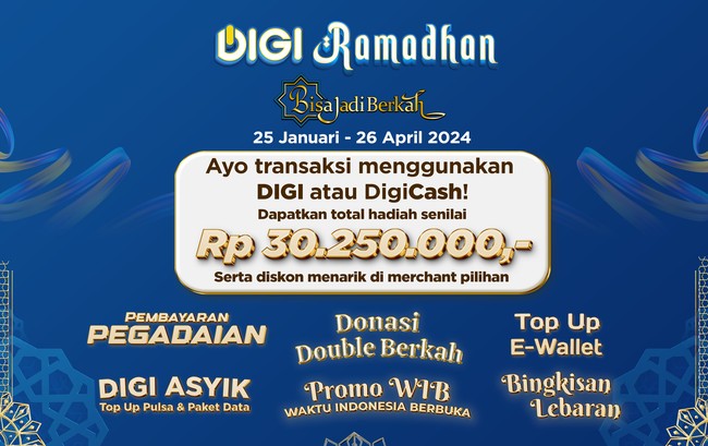 bank bjb menggulirkan DIGI Ramadan yang merupakan bagian dari program Ramadan #bjbKurma. Melalui program ini, para pengguna aplikasi DIGI by bank bjb berkesempatan untuk mendapatkan total hadiah senilai Rp 30.250.000 serta diskon menarik.