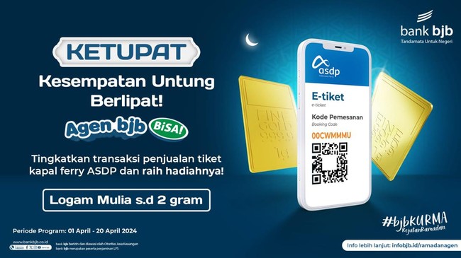 Pada program KETUPAT (Kesempatan Untung Berlipat) Agen bjb BiSA!, disediakan hadiah berupa logam mulia hingga voucher belanja. Program ini bertujuan untuk meningkatkan utilisasi transaksi bagi Agen bjb BiSA! khusus dalam fitur layanan transaksi penjualan tiket online ASDP/Indonesia Ferry melalui Agen bjb BiSA!