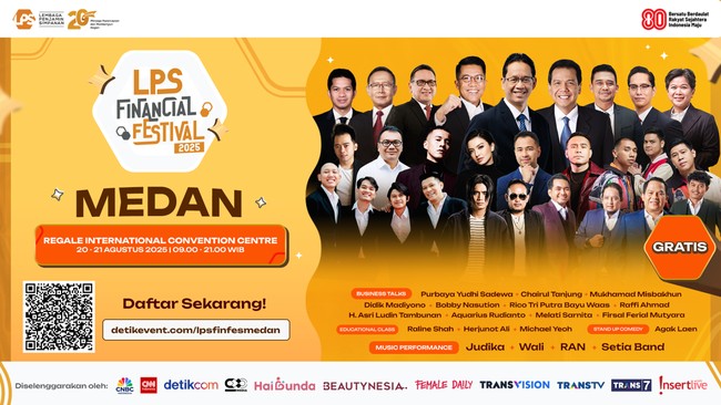 LPS (Lembaga Penjamin Simpanan) menyelenggarakan Financial Festival seiring dengan upaya meningkatkan literasi keuangan. Setelah sukses digelar di Surabaya pada 6-7 Agustus 2025, LPS Financial Festival akan digelar di Medan pada 20-21 Agustus.