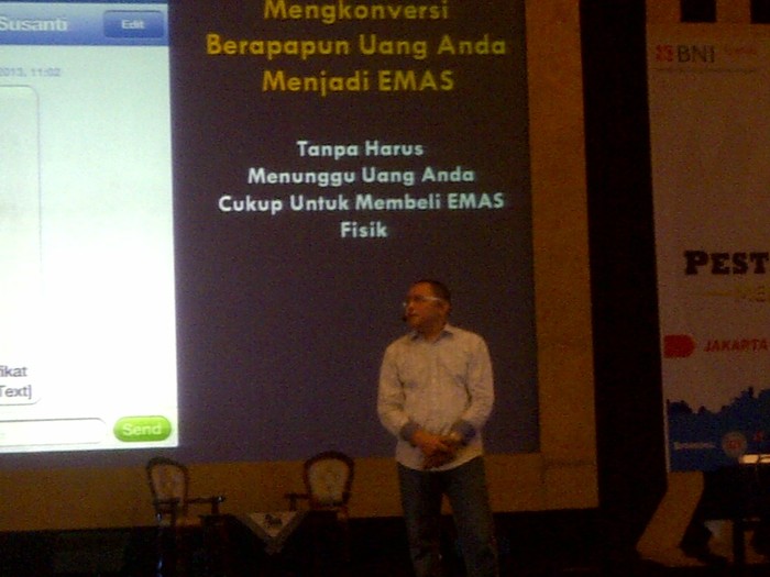 "Emas manfaat jauh lebih besar daripada keuntungannya dan di semua negara emas itu sangat penting," tutur Praktisi Emas Rully Kustandar yang juga menjadi pendiri kebunemas.com kepada ratusan peserta seminar 'Pesta Wirausaha' yang diselenggarakan oleh Komunitas Tangan Di Atas di JIExpo Kemayoran, Jakarta, Sabtu (9/2/2013).