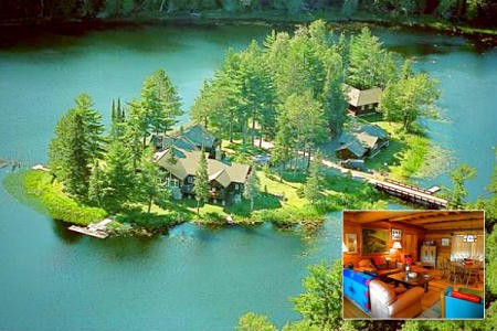 Properti bernilai US$ 18 juta ini terdiri dari sebuah pondokan besar di pulau pribadi yang dikelilingi lingkungan alami. Rumahnya dirancang oleh arsitek Jerman yang pernah membangun rumah untuk baron-baron bir Milwaukee. Di sini ada ruang penyimpanan boat dan kendaraan, tempat perlindungan bom dari tahun 1950an dan generator listrik back-up yang bisa menyalakan satu pulau lebih dari seminggu.
