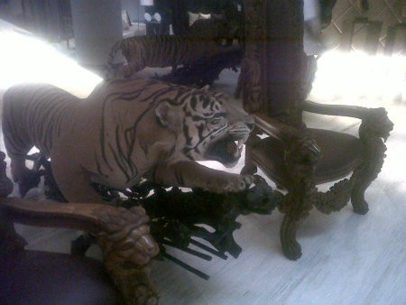 Lantai pertama sebagai dinning room, dilengkapi kamar tidur dan ruang kerja. Pada lantai ini, juga terlihat ornament harimau yang diawetkan.