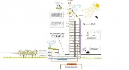Seluruh pilar penyangga di menara usulan Berg | C.F. MΓΈller ini juga terbuat dari kayu keras. Di dalam apartemen, semua dinding, langit-langit dan kusen jendela juga seluruhnya terbuat dari kayu.