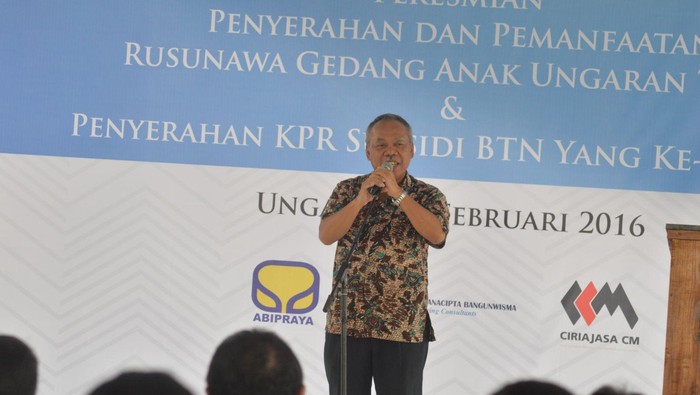 Lanjut Basuki, rusun ini merupakan bagian dari pembangunan 1 juta rumah. Pada kesempatan yang sama, Kementerian PUPR juga secara simbolis langsung menyerahkan rusun kepada para buruh.