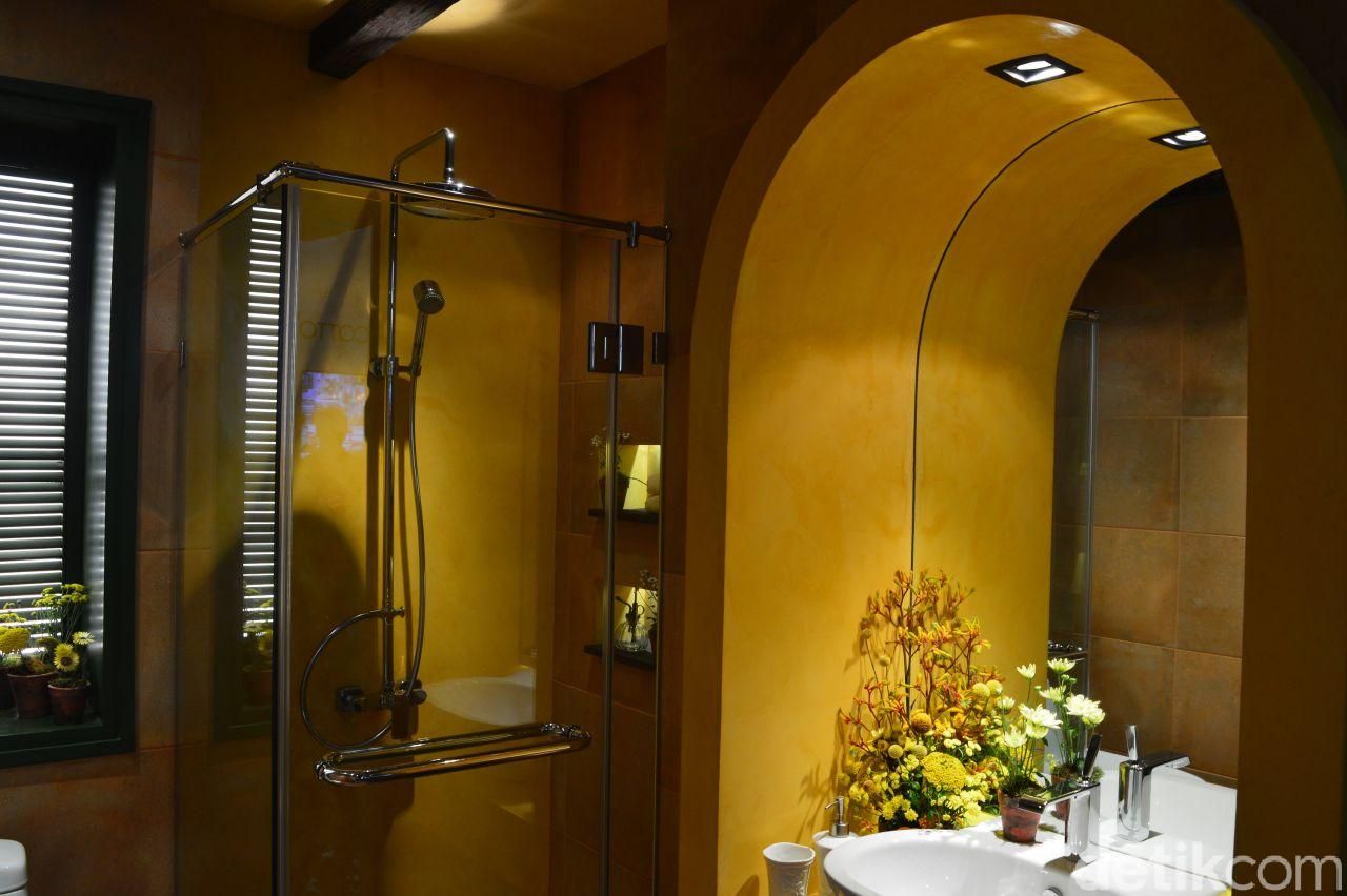 Pantauan detikFinance, ada satu unit kamar mandi bertema klasik dengan dominasi warna cokelat tanah pada lantai dan dinding menjadi salah satu tema yang paling banyak menarik perhatian pengunjung.