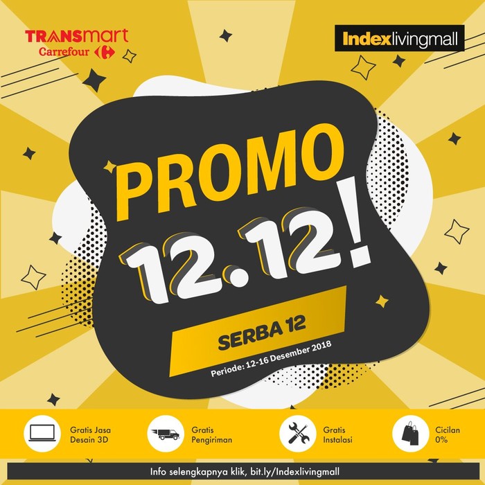 "Jangan lewatkan kesempatan belanja seru di Promo 12.12 yang serba 12 mulai tanggal 12 kemarin hingga 16 Desember mendatang di Index Living Mall," ujar Vice President Corporate Communication PT Trans Retail Indonesia, Satria Hamid dalam keterangan tertulis, Kamis (13/12/2018).