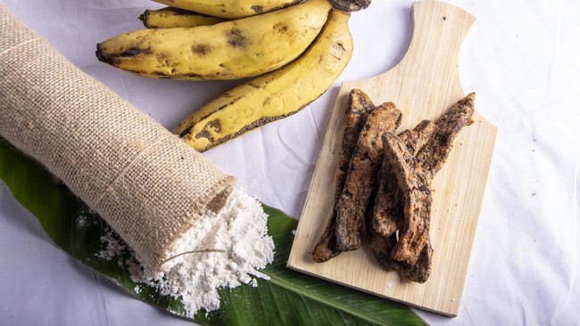 "Jadi kalau pisangnya agak gede, itu ujungnya ditusuk aja pakai jari, kebelah. Kalau kecil pakai pisau. Terus abis itu dijemur kering 5 hari, tapi bisa juga seminggu tergantung cuacanya. Nah malamnya di-oven biar kering. Singkatnya gitu, nanti tinggal pake tepung terus digoreng," terang Asep.