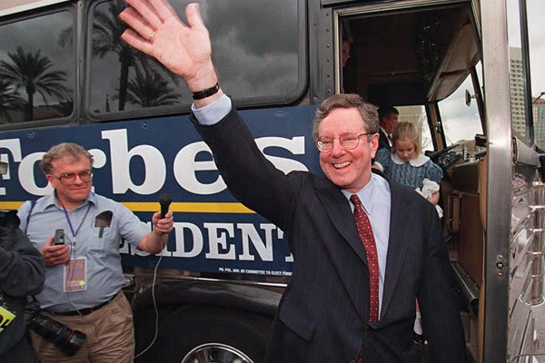 Forbes adalah calon presiden pada tahun 1996 dan 2000. Dia mengusulkan meninggalkan kode pajak dan memperkenalkan pajak flat.
