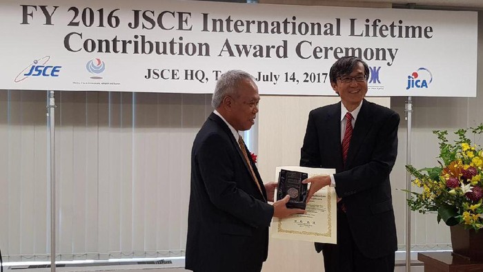 Penyerahan penghargaan dilakukan oleh Wakil Menteri MLIT Yosuke Tsuruho dan Wakil Presiden JSCE Daisuke Saito pada acara Malam Penghargaan JSCE, di Tokyo, Jepang, seperti dikutip dari siaran pers, Jumat (14/7/2017).